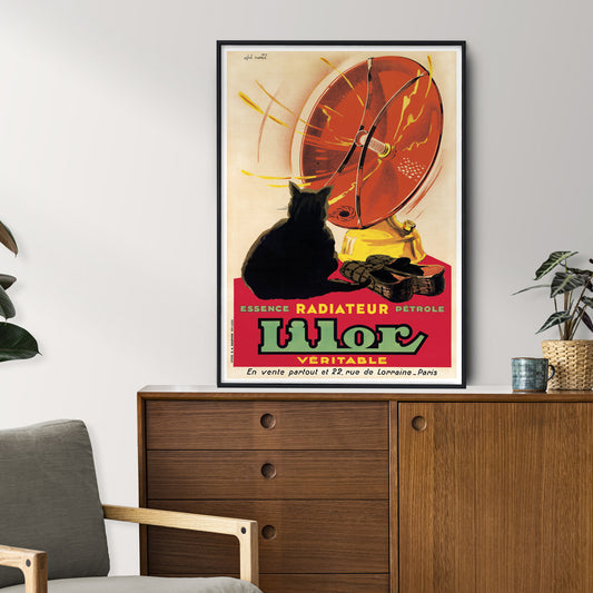 Cosy Cat: French Vintage 1930s Advertising Poster For Lilor Petrol Heaters