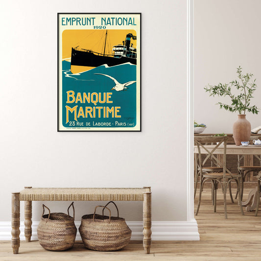 French Vintage Advertisement Poster For The Banque Maritime