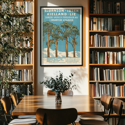 Nordic Literary Poster – Ibsen, Bjørnson, Kielland, Lie – Gyldendal Publishing c.1905
