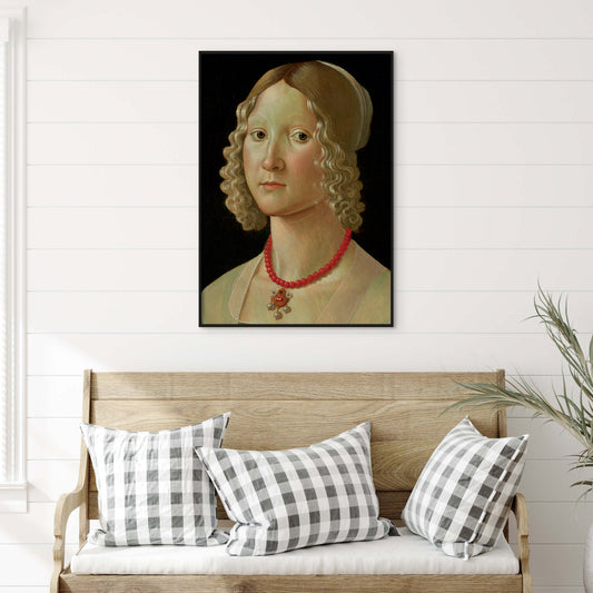 Woman With A Red Necklace - Close-Up Renaissance Portrait Print
