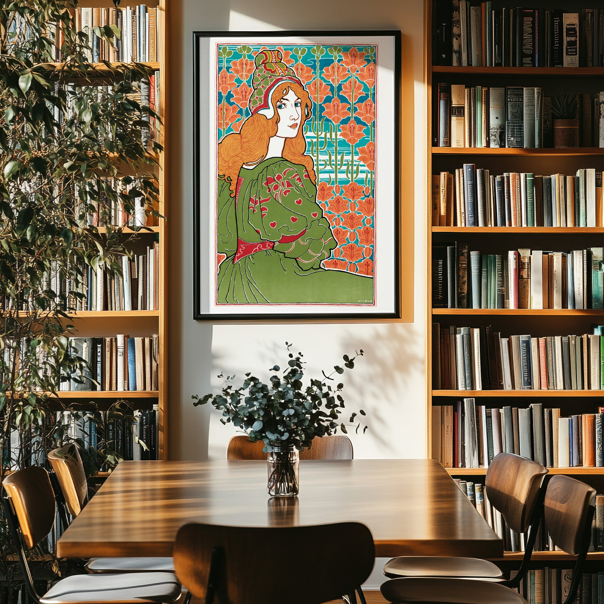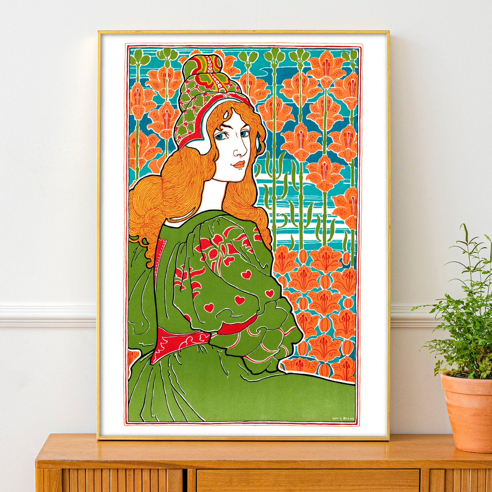 This advertising poster from 1897, entitled Jane, is by the British-born American illustrator Louis Rhead, who is best known for his extensive legacy of Art Nouveau posters and advertisements (and not for the fact that he died after an epic struggle with a giant turtle).