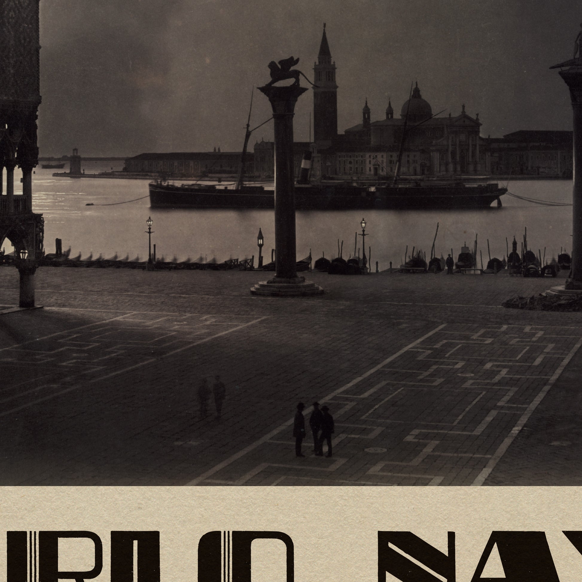 This exhibition poster features the work of the Italian photographer Carlo Naya (1816-1882). He is best known for his photographs of Venice, including this dramatic example, Venice, St Mark's Looking Towards San Giorgio Maggiore, in Moonlight, which he shot around 1870.