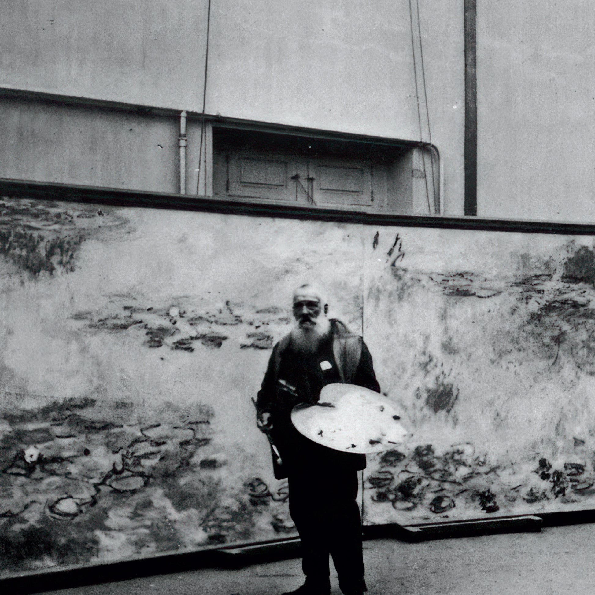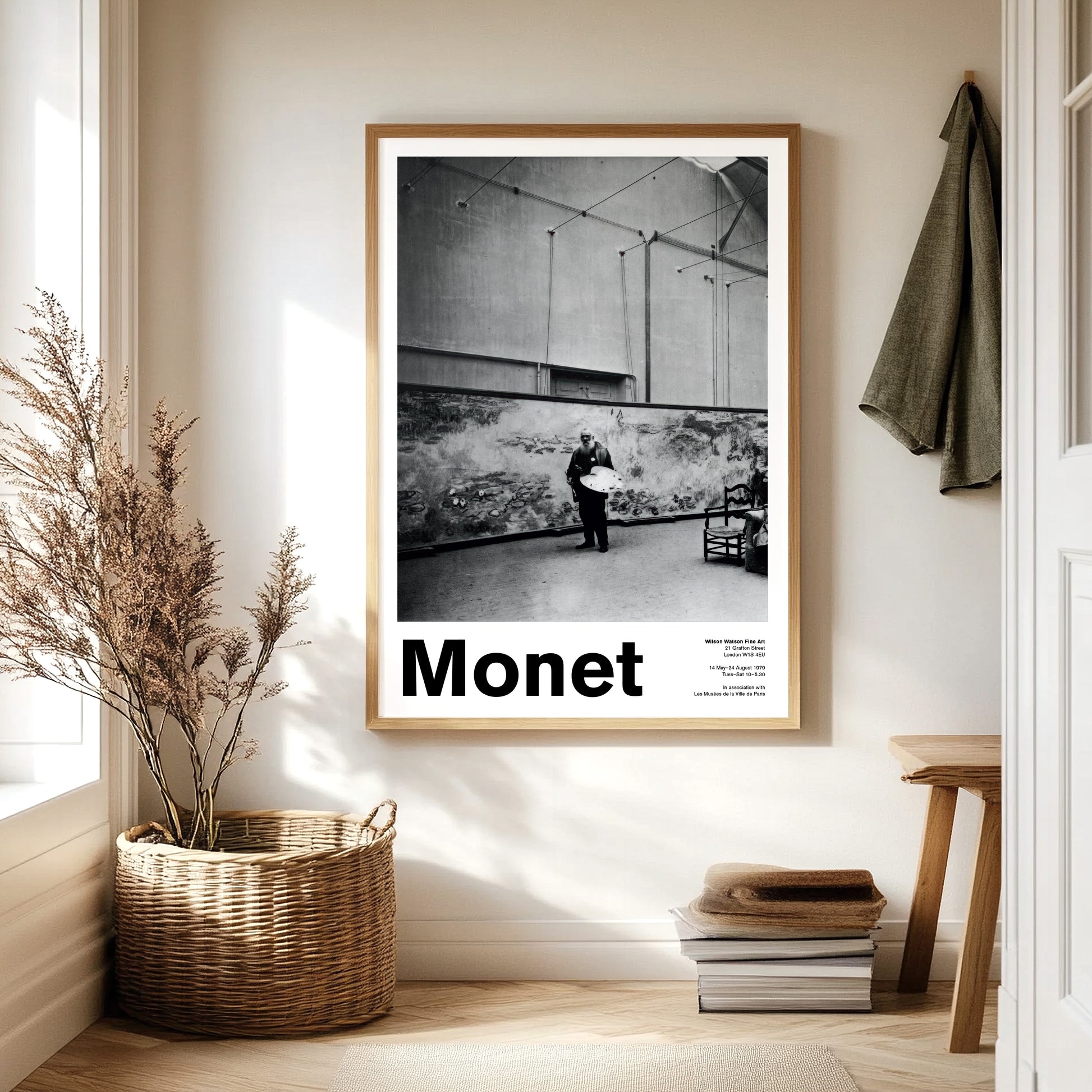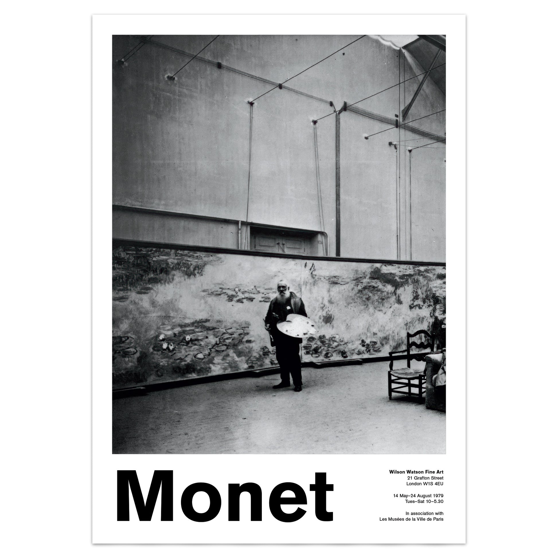 Our poster for a Claude Monet exhibition takes a different approach than normal by showing you the man himself, at work in his huge studio in Giverny on the 'Water Lilies' series ('Les Nymphéas), in 1920. He's working on one of the huge curved canvases that are now permanently on display in the Musée de l'Orangérie in Paris. It's a fascinating glimpse into the working life of an artist who was still at the top of his game, 50 years after changing the art world forever with the advent of Impressionism.