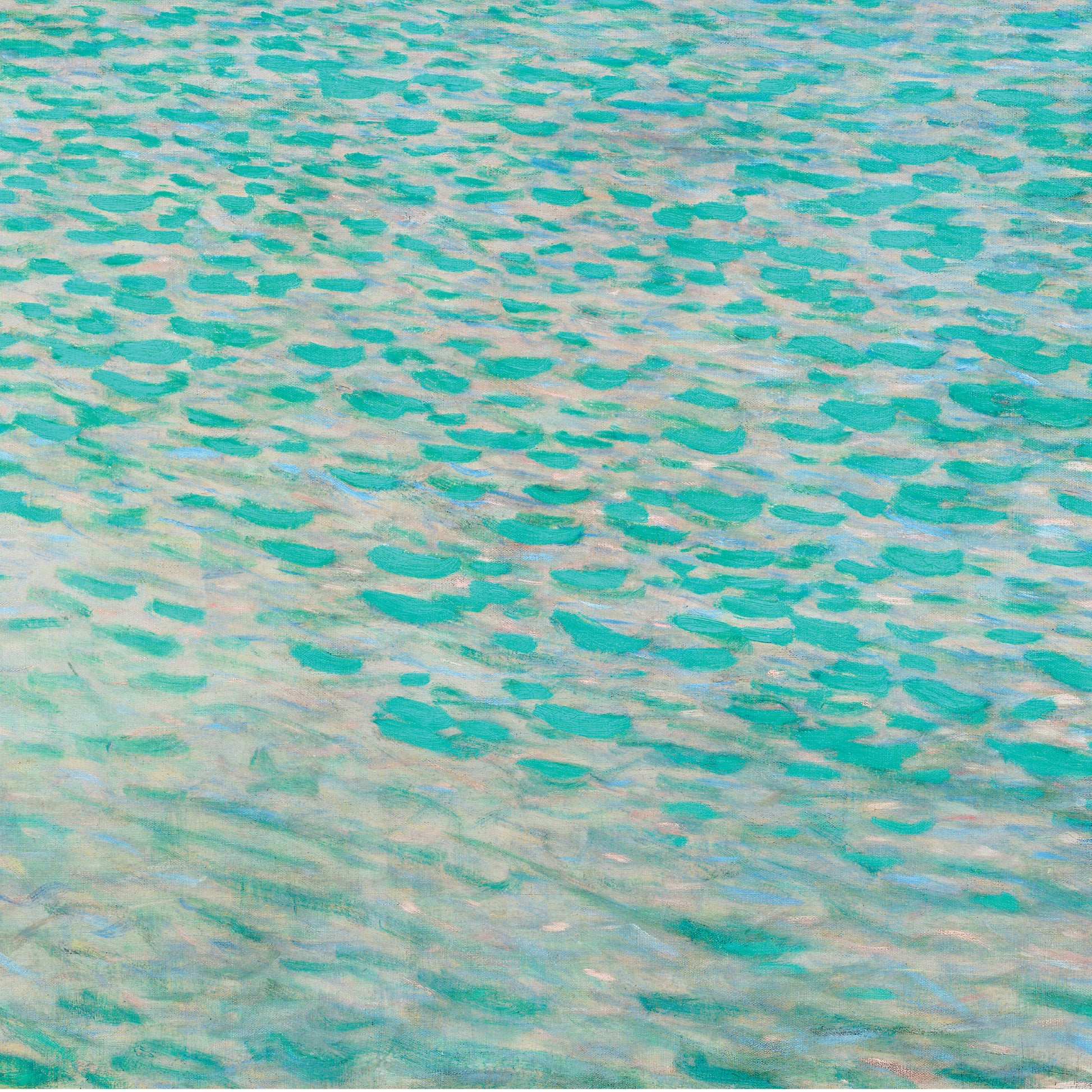 This exhibition poster features Gustav Klimt's 1900 painting Attersee. The Attersee Lake (sometimes known in English as Lake Atter) was a place where Klimt and his family spent many summers between 1900 and 1916 and it proved to be hugely inspiring for his art.