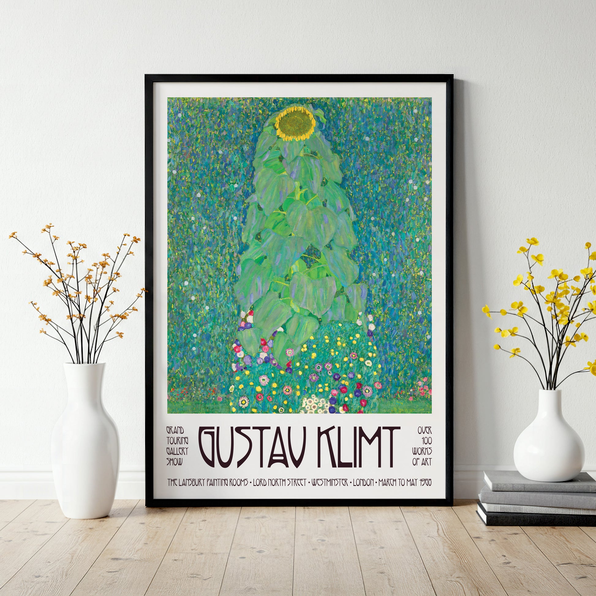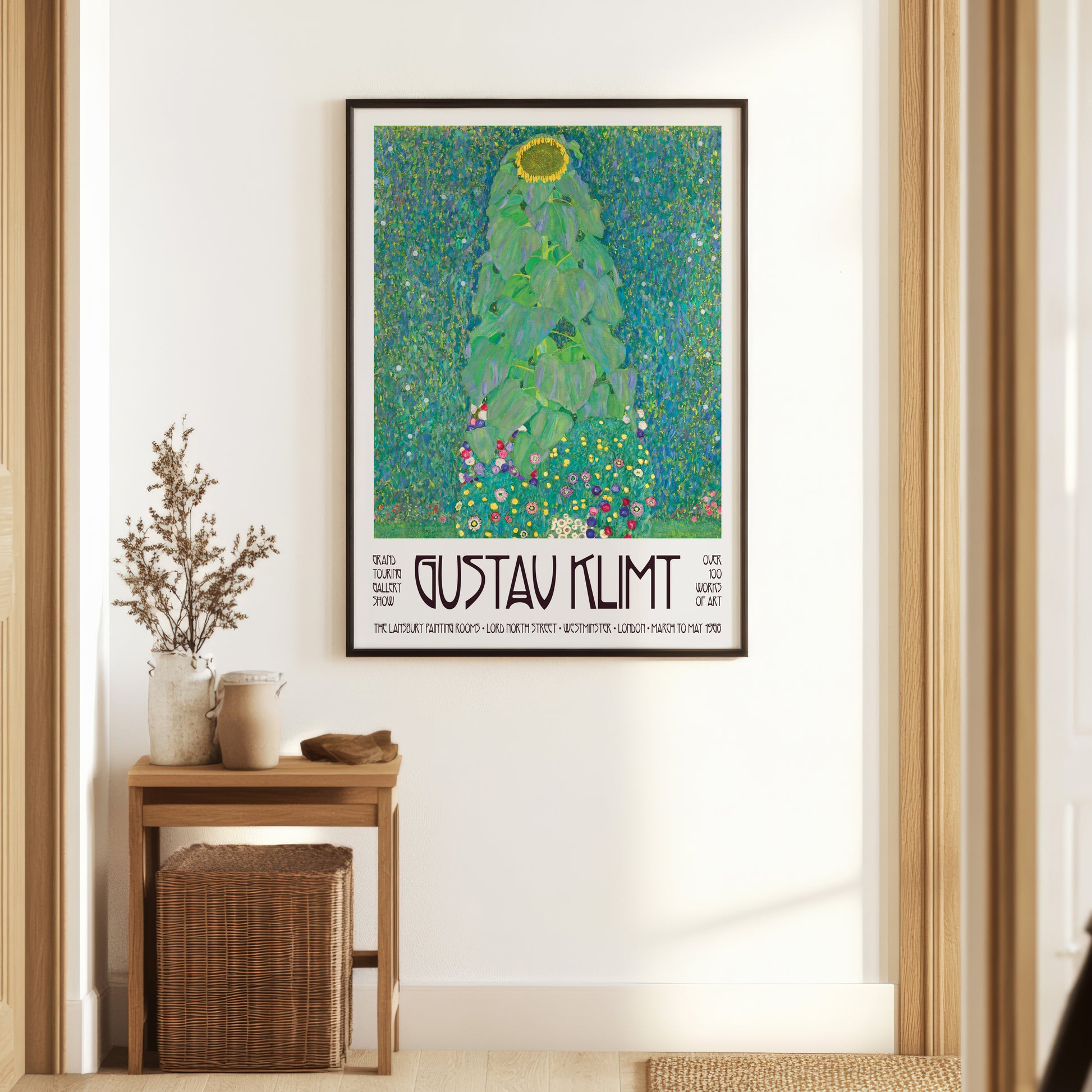 This exhibition poster shows Art Nouveau artist Gustav Klimt's wonderful 1907 painting Sunflower.