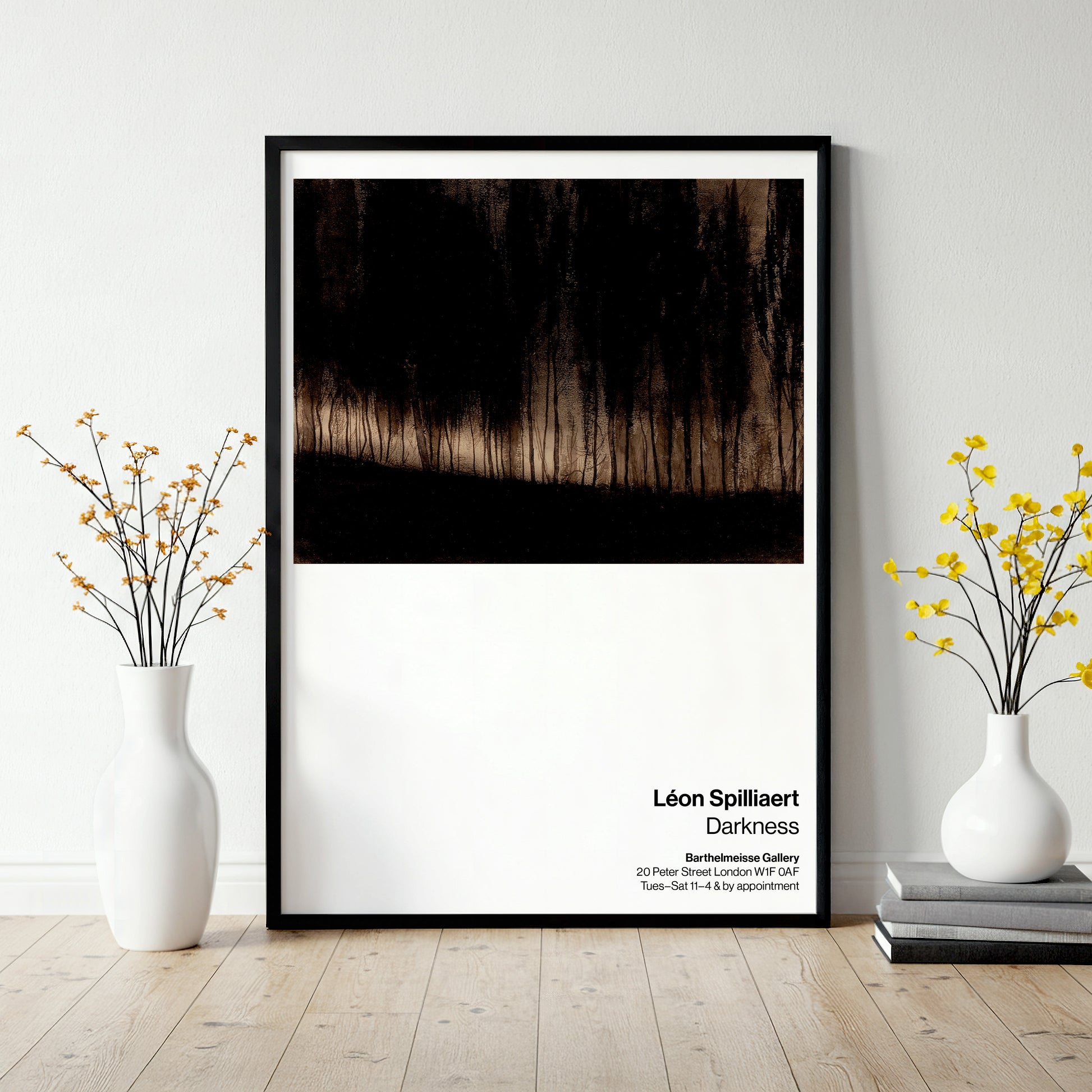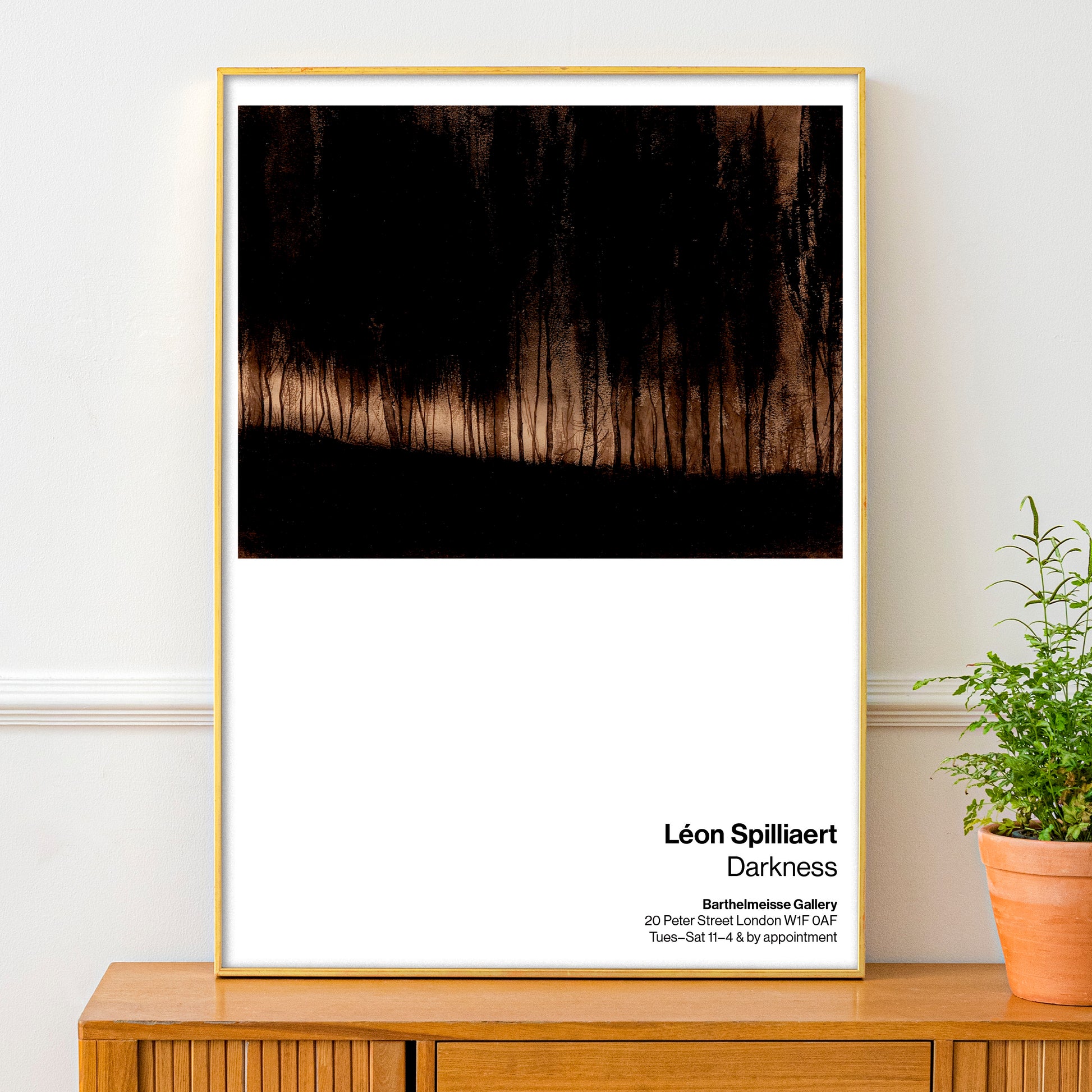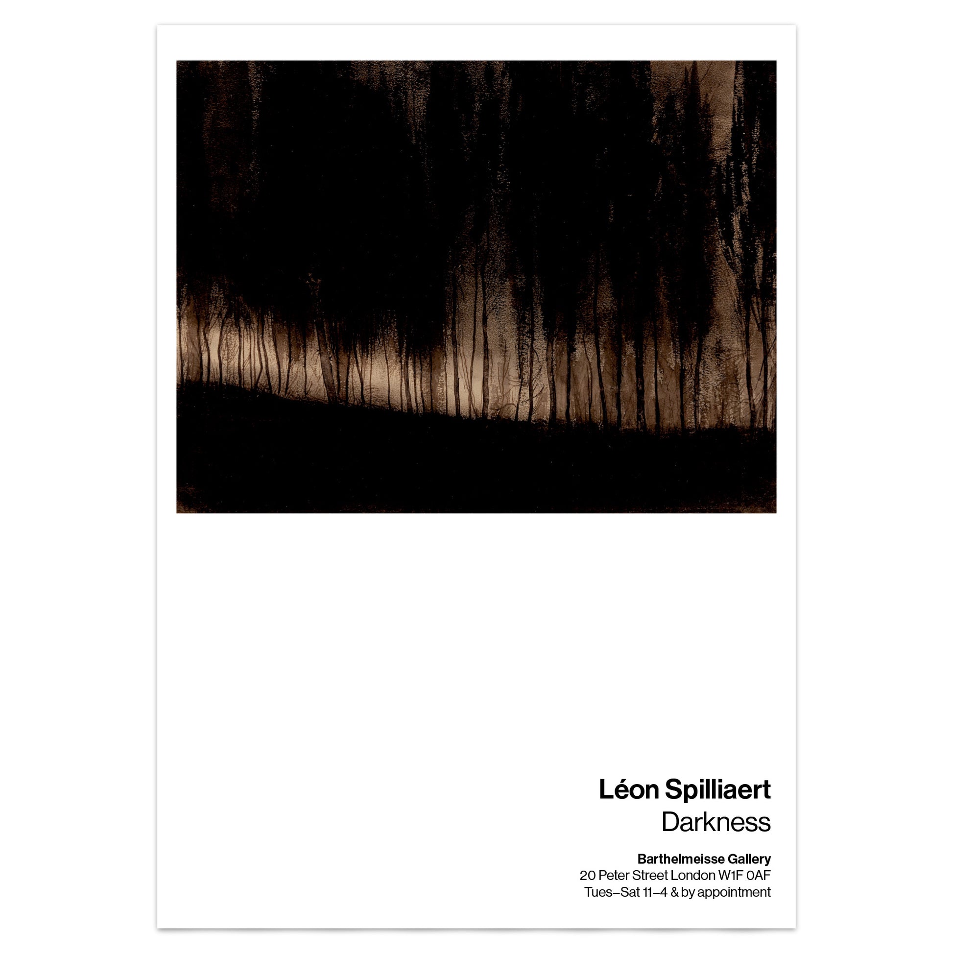 Léon Spilliaert’s Moonlight in the Forest (1900–1901) is a significant work of Belgian Symbolism, using dense India ink washes to portray a dimly lit forest shrouded in introspection. This exhibition poster highlights Spilliaert’s fascination with solitude, silence, and nocturnal atmosphere. A striking piece of early modernist art, it is ideal for collectors and admirers of moody, psychological landscapes.