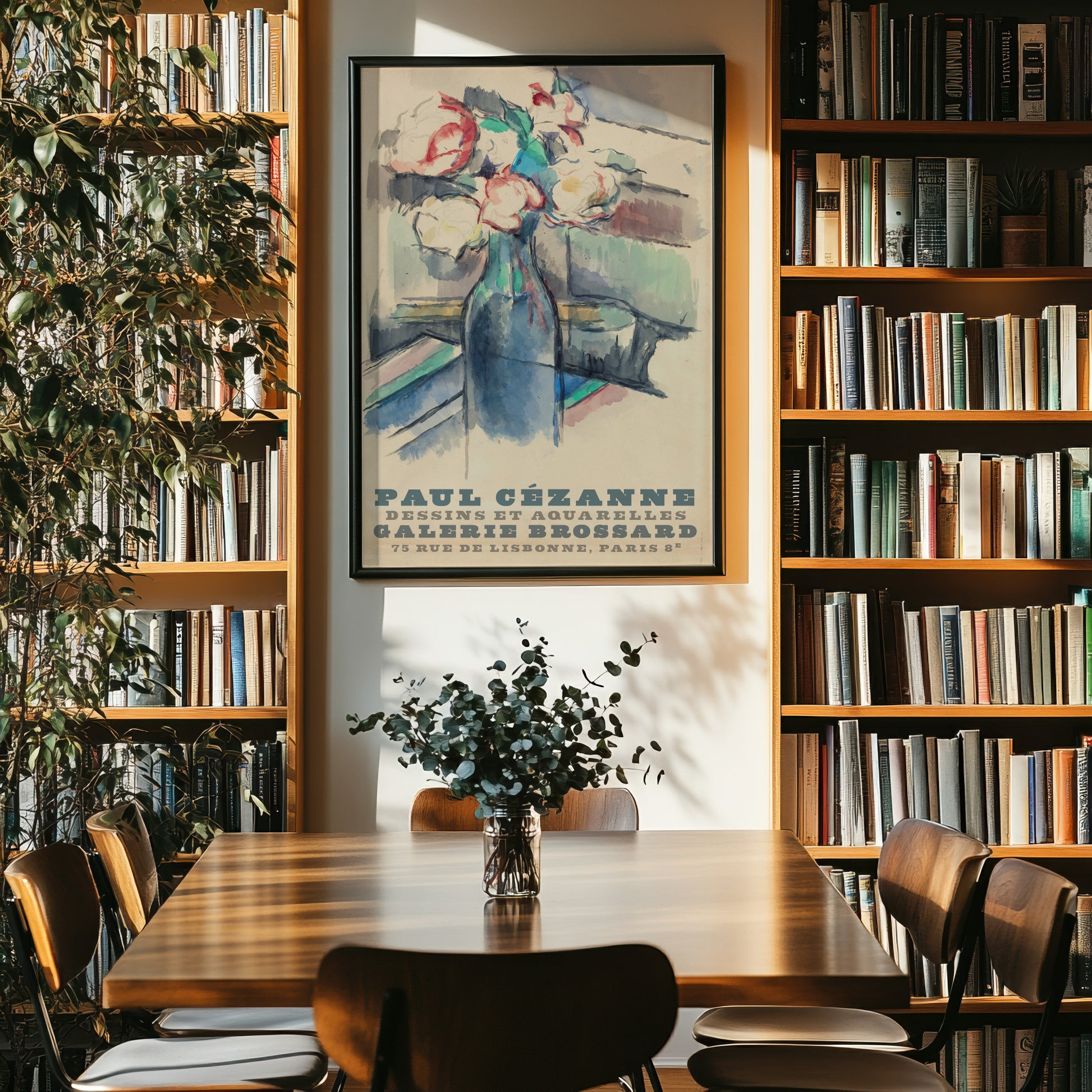 This poster for a Paris exhibition of the Post-Impressionist artist Paul Cézanne's drawings and watercolours features his work Roses In A Bottle from 1904.