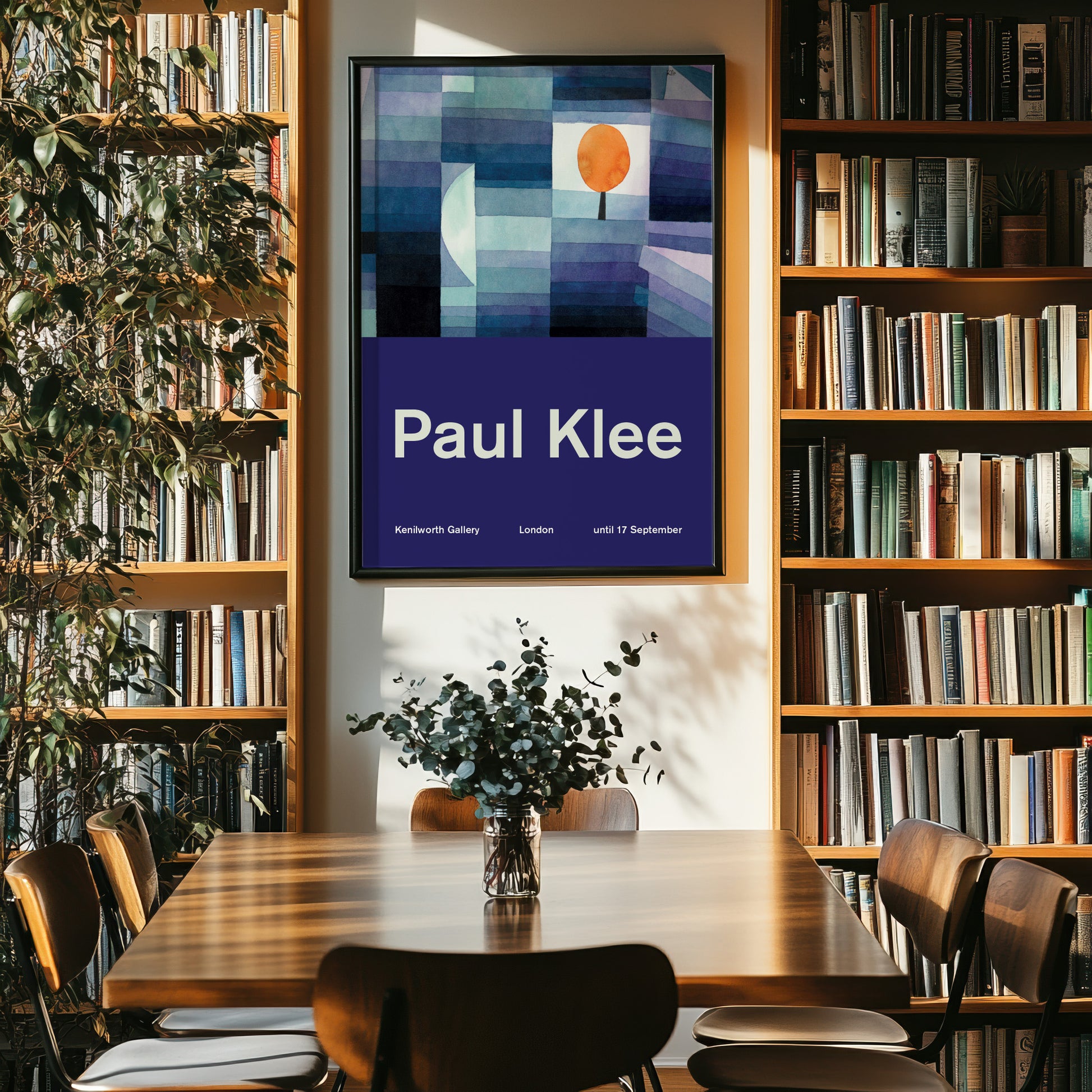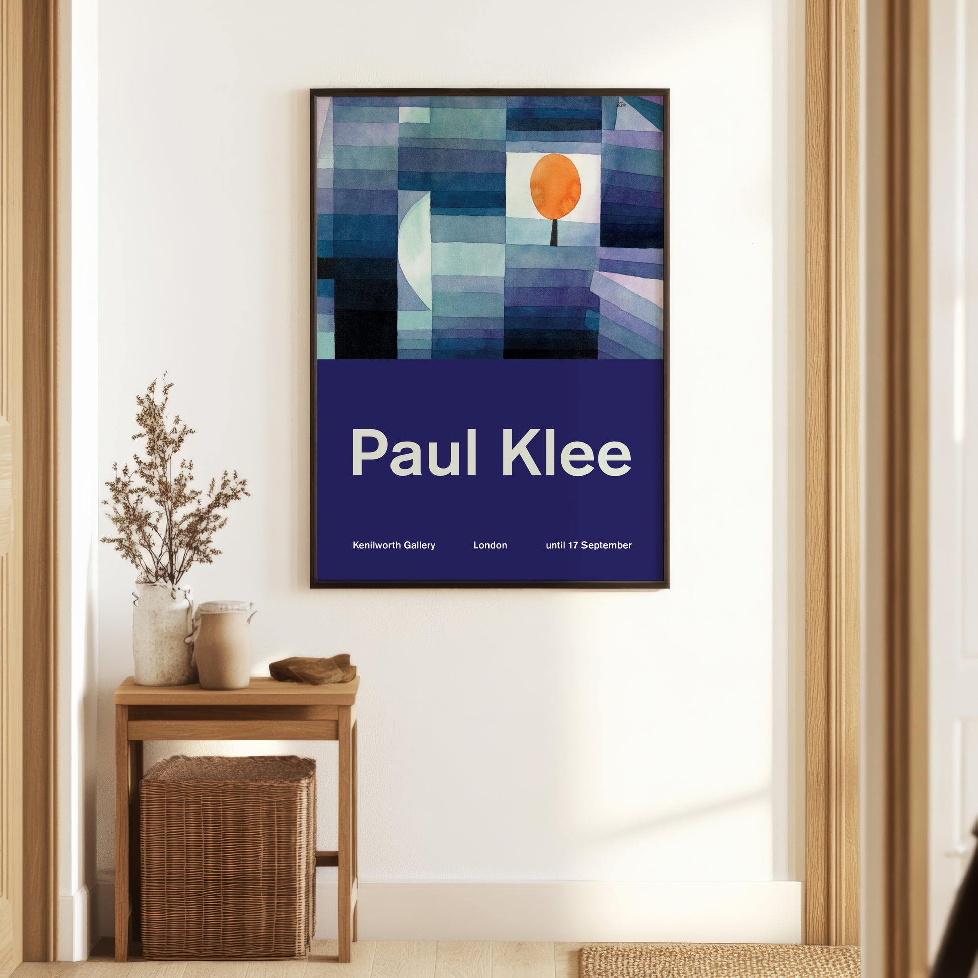 A poster for an exhibition of paintings by the Swiss-German artist Paul Klee. The image used in the background on this poster is Klee's 1922 watercolour Harbinger of Autumn