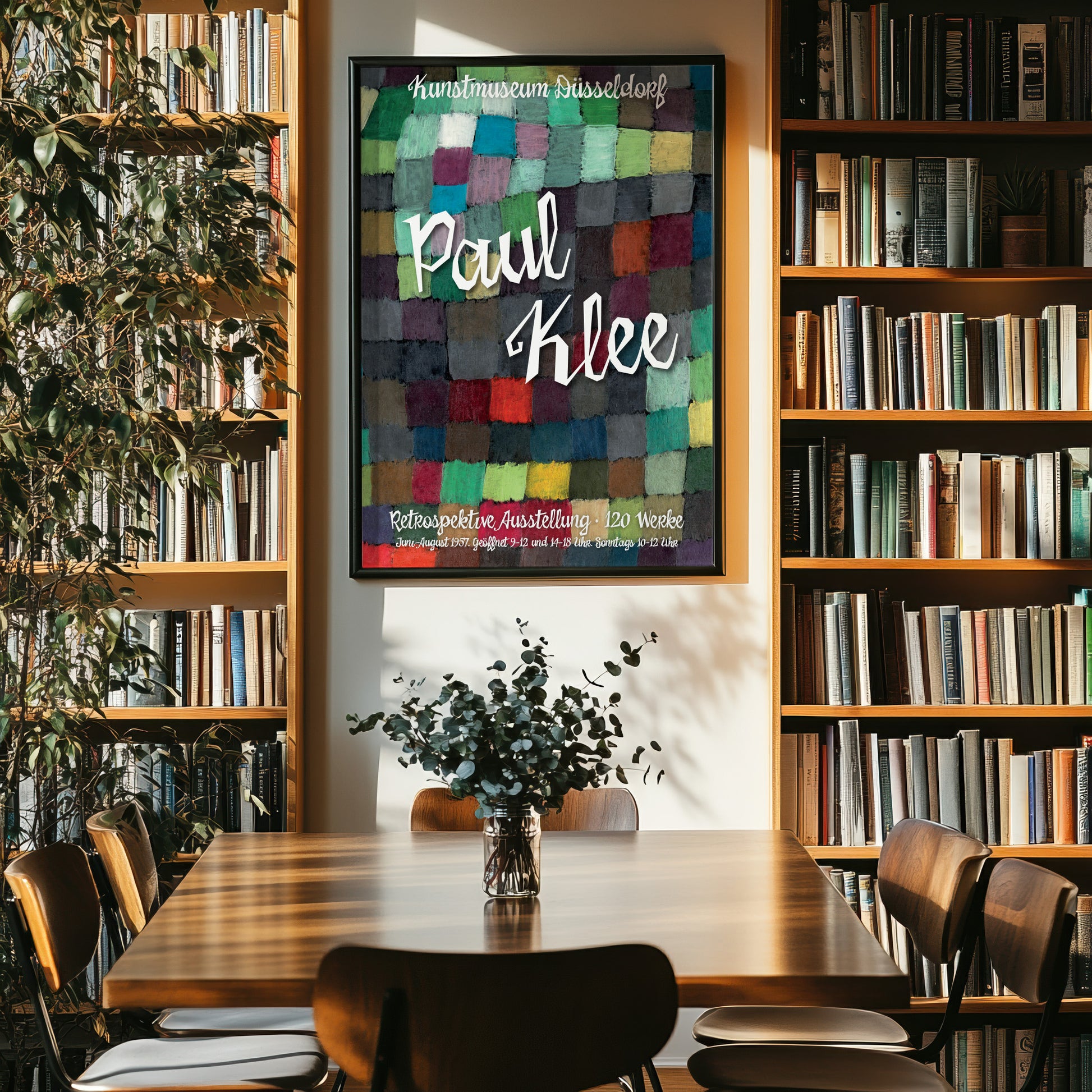 A poster for an exhibition in Düsseldorf of the work of the important Swiss-German artist Paul Klee. The image used in the background on this poster is Klee's 1925 abstract work May Picture.