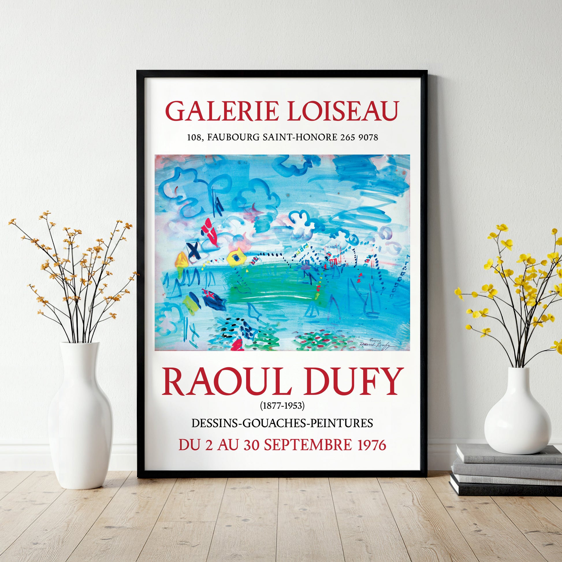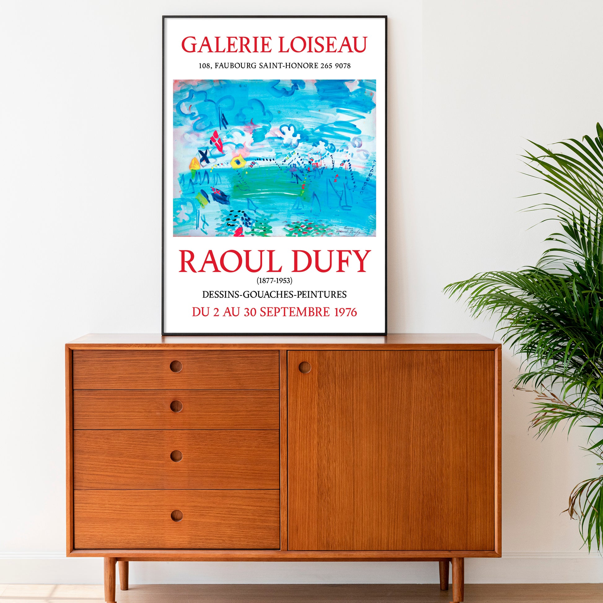 The vibrant world of Raoul Dufy comes to life with this 1976 Galerie Loiseau exhibition poster, featuring the artist’s 1929 masterpiece 'Régates à Cowes'. With its dynamic depiction of the celebrated regatta, this poster is infused with Dufy's spirited brushwork and maritime hues. It’s a sophisticated nod to French Modernist art, offering an elegant touch to any interior.