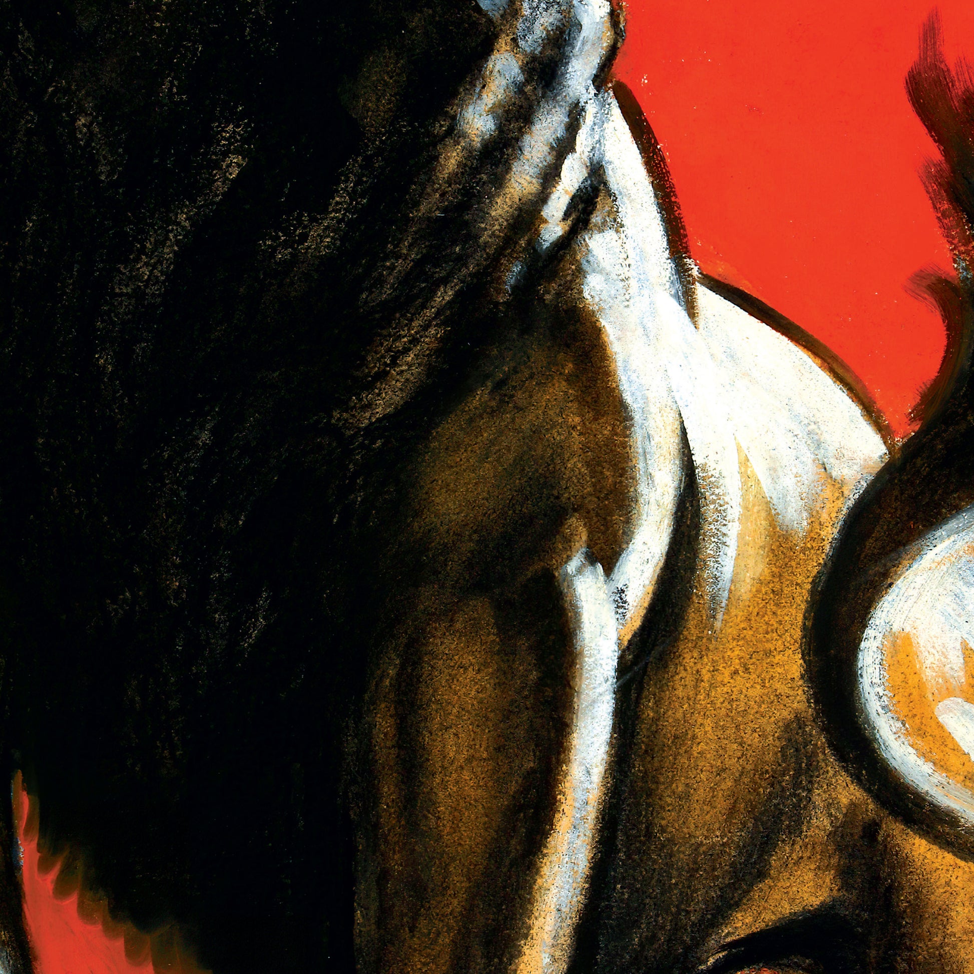 This striking poster of a lion by the illustrator Tom Purvis was designed to boost morale in Britain during World War II. The lion has long been used as a symbol of British determination, strength and resilience. Purvis drew several posters in the same patriotic vein, though he's perhaps best known for his railway posters. These tend to use flatter areas of colour, whereas here in this poster his chalk and gouache modelling create a very sculptural effect with the body of the lion. The combination of this and the intense background colour make this a very strong poster indeed!