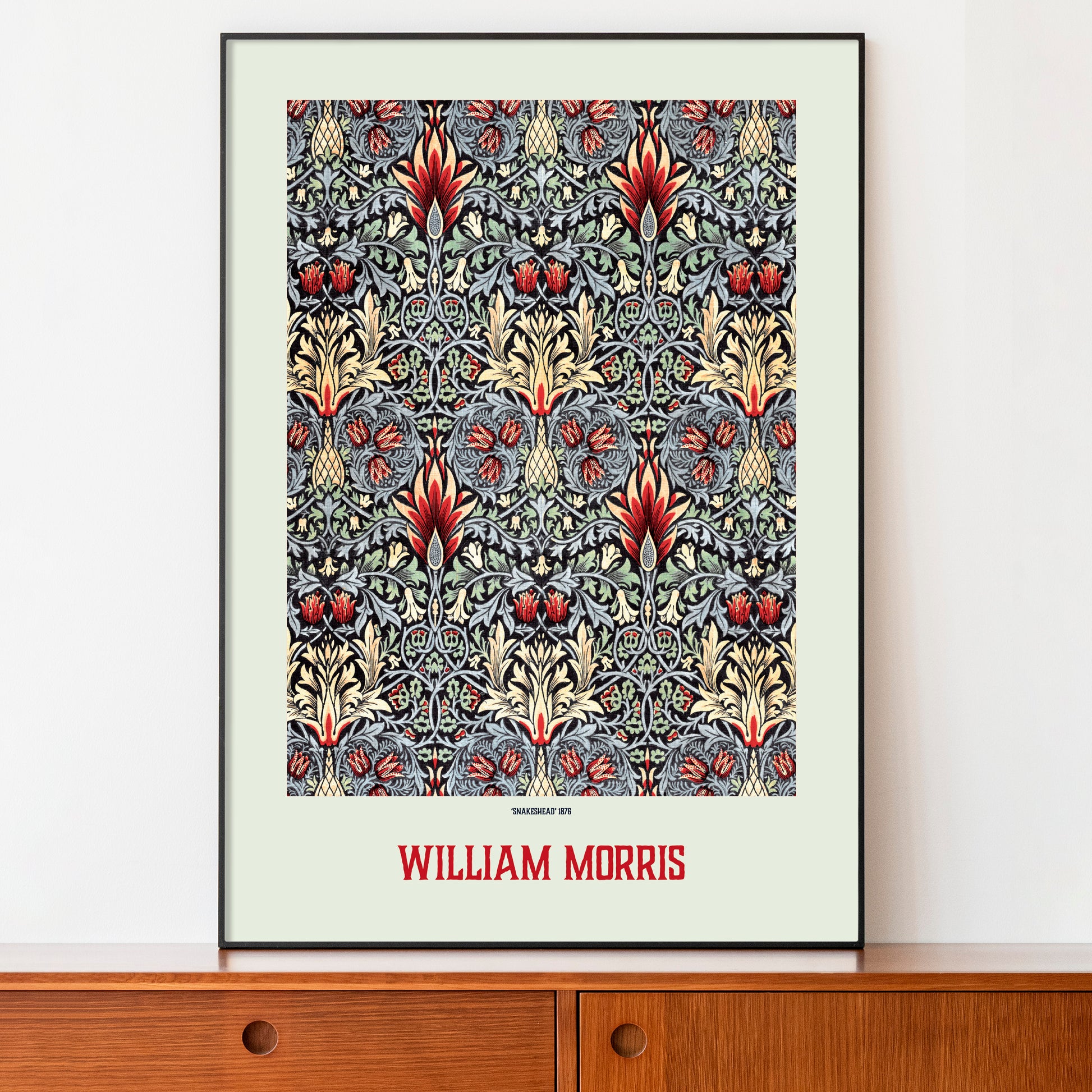 This poster features the Arts and Crafts pioneer William Morris' striking 1877 design Snakeshead.